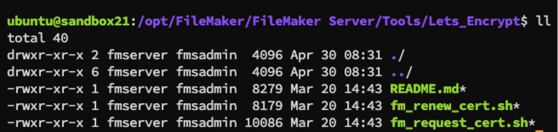 The script will use the fmsadmin CLI to import the LE SSL certificate into FileMaker Server, so it must have access to your Admin Console credentials.